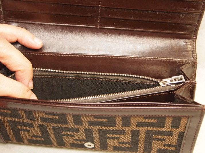 フェンディの長財布・小銭入れ部分の内張りやぶれです。