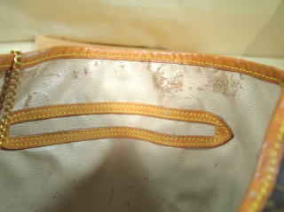 30年以上前のカルティエのバッグ![]() マチの天部分破れ・全体キズ・パイピング不良 |