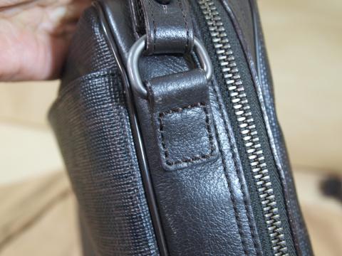 本体のマチに取り付けられたストラップの付け根革が切れています。