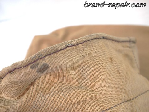 上部の角には革パーツがありませんので擦切れて大きな穴が空いています。