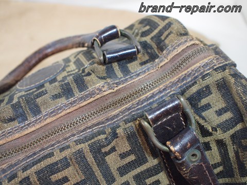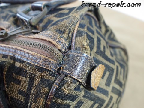 ボストンバッグでは重要な部分ですがご自身で修理した痕跡があります。