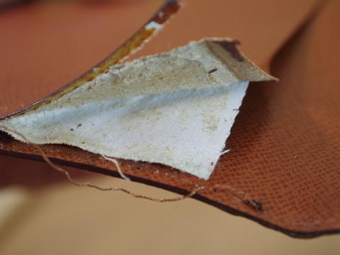 補強芯を入れ込むために合成皮革の内張りを剥がしてみましたが・・・・