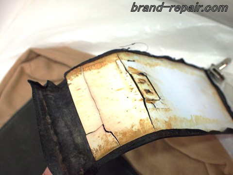 鉄芯が革を突き破って裂けています。