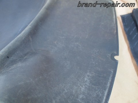 とくに擦れやすい外周は表皮が剥がれて革の繊維が毛羽立っています。
