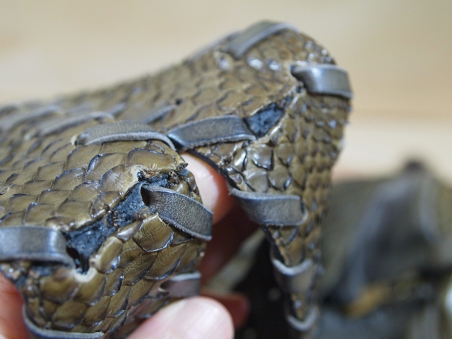ショルダーの表革と裏革を解体して内縫いし直す必要があり手間暇が掛かります。