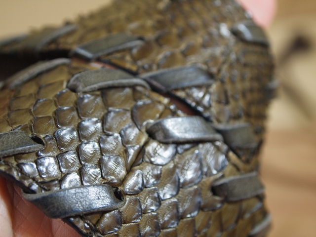 この部分を縫い直すためには、編み込まれた革紐を取り外し、